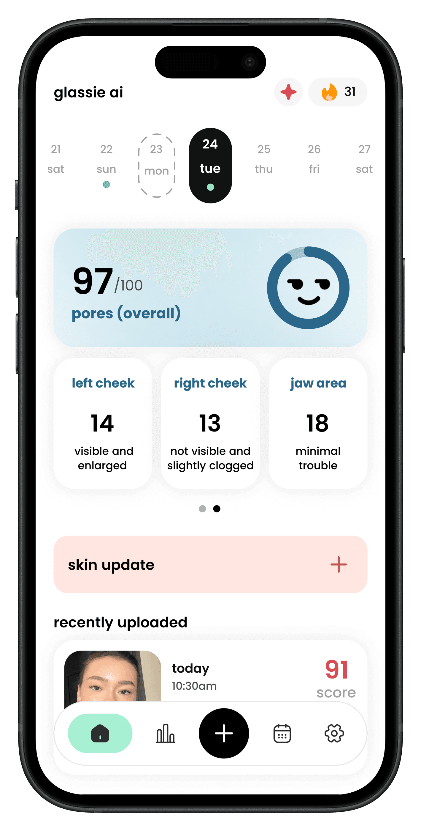 Glassie scans your face, tracks changes, and shows what’s working. We're all about clear skin, backed by data.